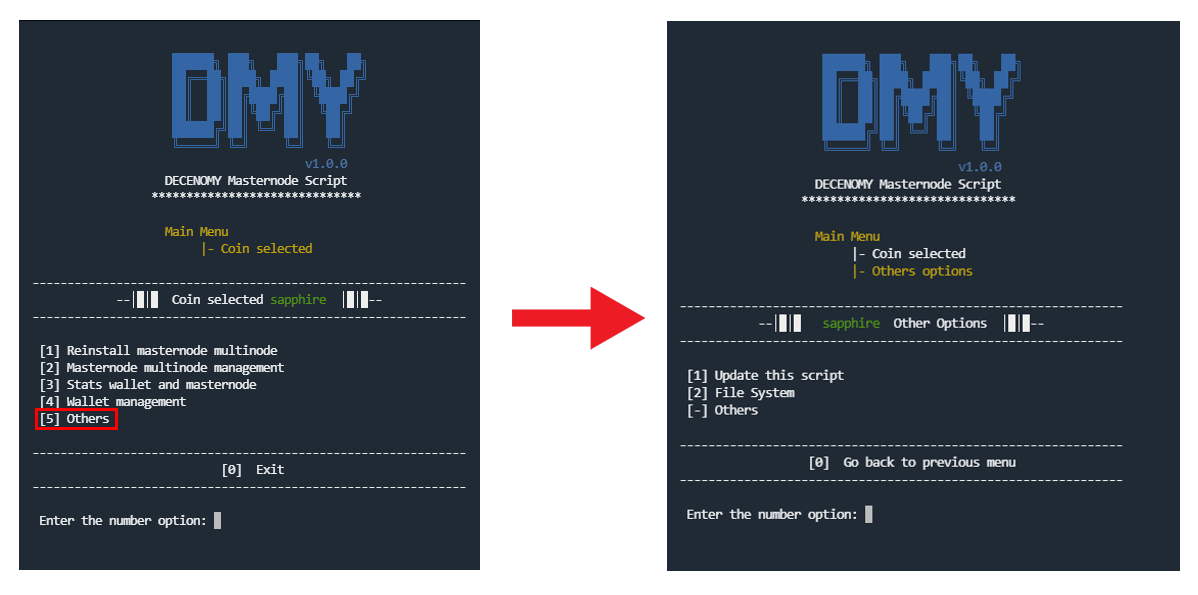 This option can be used in case of a script update. The script will assist the user by reading the latest version presented on GitHub and currently installed on the system (the version in use). The user will then be prompted to decide whether or not to upgrade. ( The same menu can be accessed directly from the main menu option number 18 )