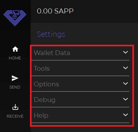 * sapphire.conf (used to open the wallet configuration file)