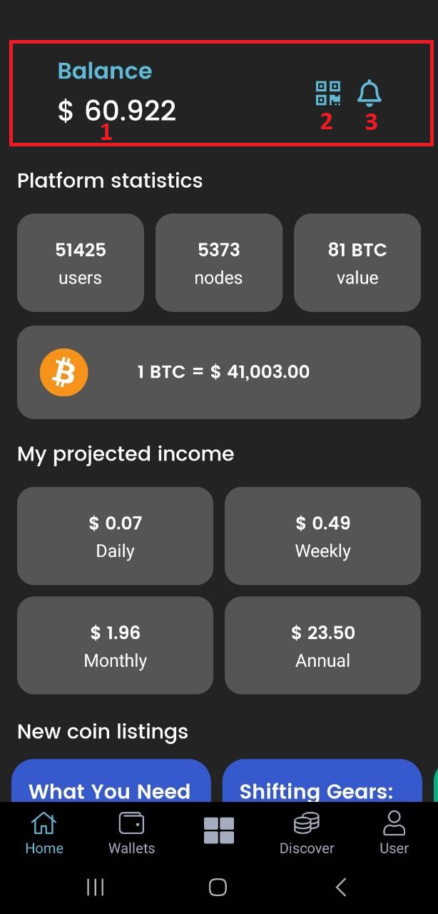 1. **Home**: Used to navigate to the wallet's 'Home Page'